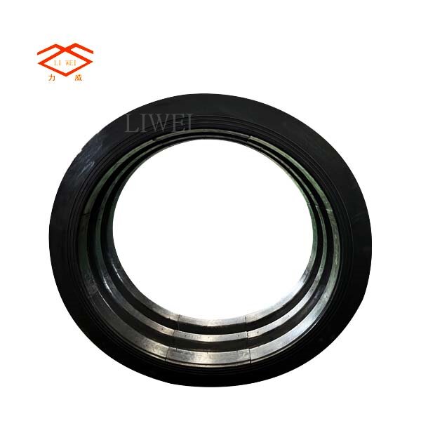 该产品主要利用橡胶的独特性能,如高弹性、高气密性,耐介质性及耐辐射性,采用高强度,冷热稳定性强的聚酯帘布斜交与之复合后,经高压,高温模压交联而成,内部致密度高,能承受较高压力,弹性变形效果优异,产品结构设计端面弧高,曲线长,具有较大的多项位移功能,特别使用于地质条件复杂,沉降幅度大和管道运行中冷热变化频繁易造成管道损伤的场所,利用橡胶的弹性滑动位移和变形机械力的传热散逸功能有效的消除泵,阀及管道自身的位移物理破坏。因橡胶属不良传导材料,所以它是一种良好的降低振动和噪声传递的产品,该产品设计内壁光滑,经实际测试,对介质的流速,流量无任何影响,并且不生锈,基本可以免除有效运行期内的维修。