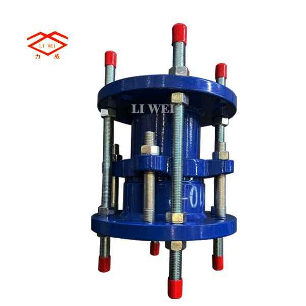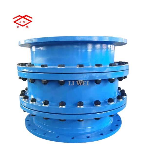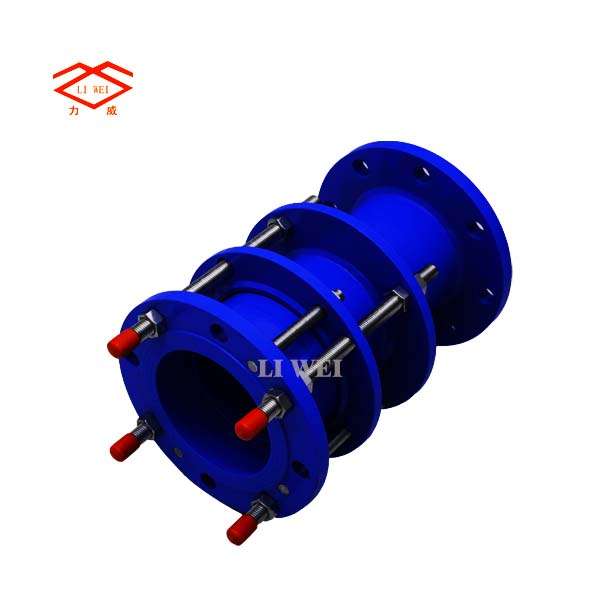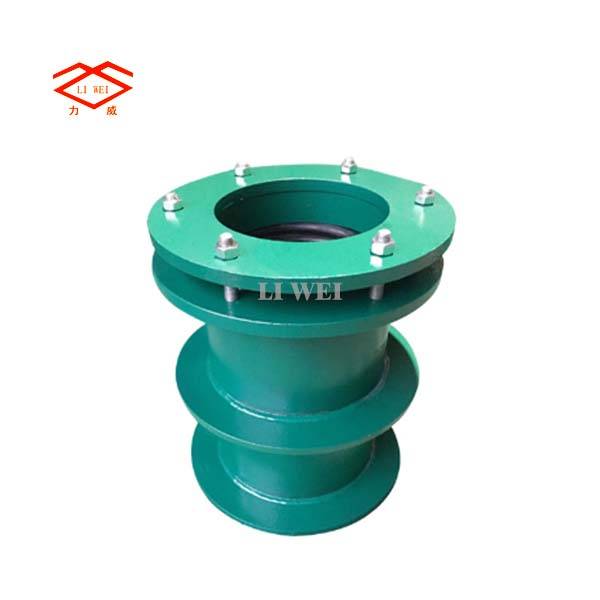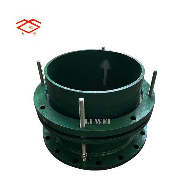 该产品采用金属铸造或焊接组成,松套部位选用梯形圆环橡胶密封圈,在压盖和螺栓的作用下,利用橡胶的压缩弹性变形原理。迫使密封圈变形于接头本体伸缩管外壁之间进行静密封。金属和密封圈严格按使用性能及用户要求选用。材质外部涂装高强度防腐漆料,各部连接螺栓为高强度碳钢或不锈钢制作。因为本体与伸缩管之间有一定间隙,使它具有一定的轴向和径向位移。在管道中能有效的补偿和缓解管道盲板推力,又能便于水泵、阀门的安装维修和更换,实为管道安装及运行中最为理想的配套产品。