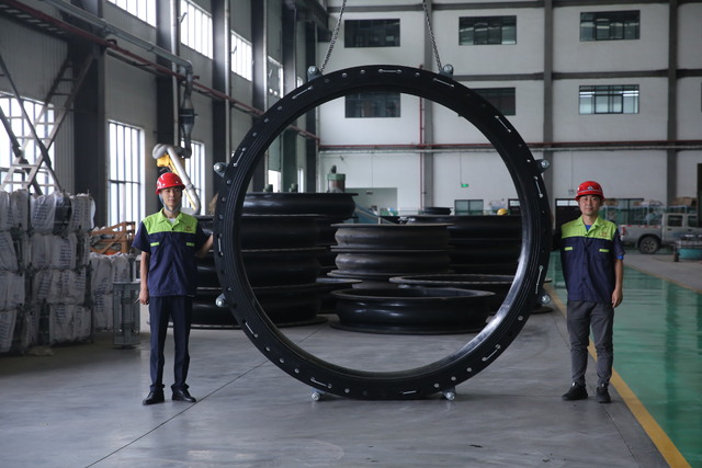 该产品主要利用橡胶的独特性能,如高弹性、高气密性,耐介质性及耐辐射性,采用高强度,冷热稳定性强的聚酯帘布斜交与之复合后,经高压,高温模压交联而成,内部致密度高,能承受较高压力,弹性变形效果优异,产品结构设计端面弧高,曲线长,具有较大的多项位移功能,特别使用于地质条件复杂,沉降幅度大和管道运行中冷热变化频繁易造成管道损伤的场所,利用橡胶的弹性滑动位移和变形机械力的传热散逸功能有效的消除泵,阀及管道自身的位移物理破坏。因橡胶属不良传导材料,所以它是一种良好的降低振动和噪声传递的产品,该产品设计内壁光滑,经实际测试,对介质的流速,流量无任何影响,并且不生锈,基本可以免除有效运行期内的维修。